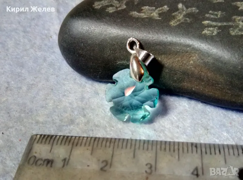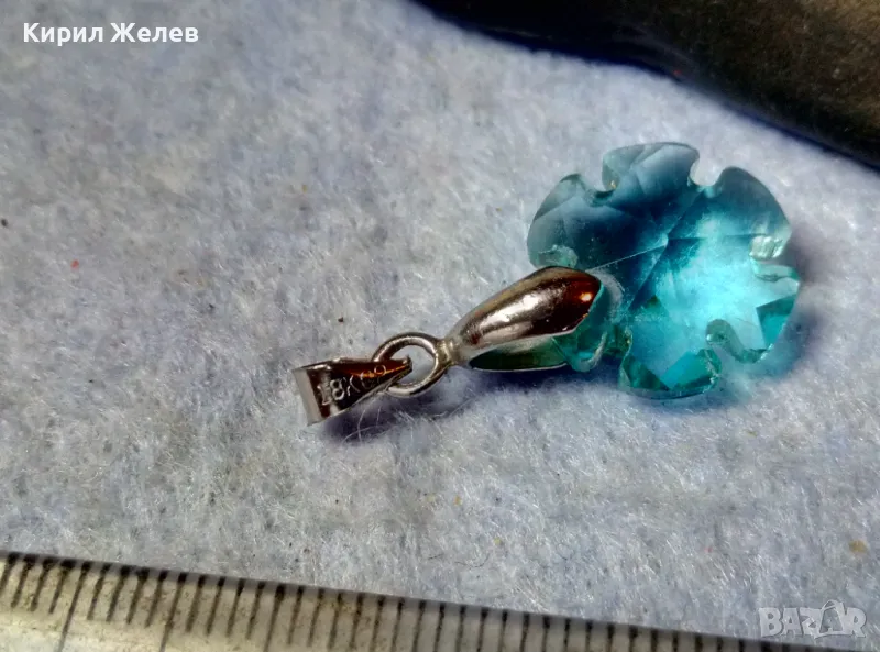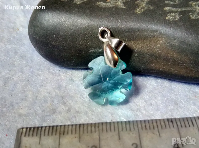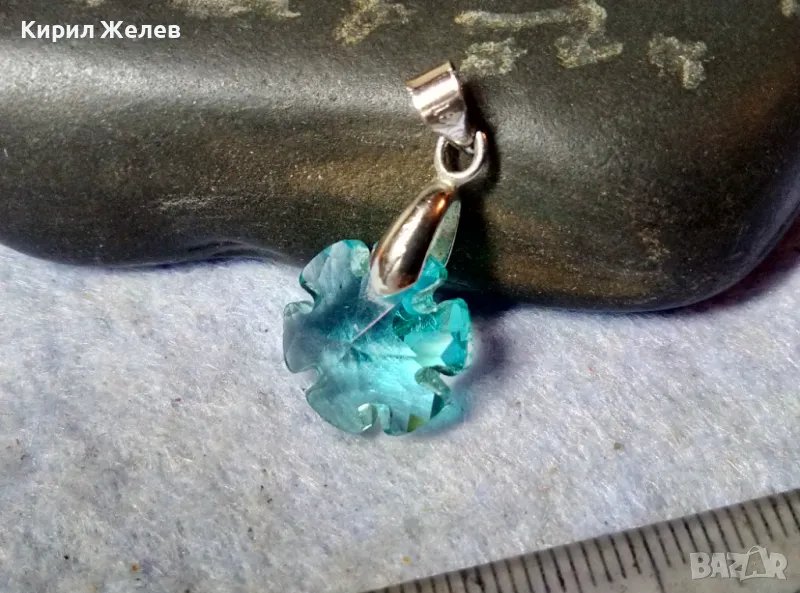 НЕЖЕН СКЪПОЦЕНЕН АРТ МЕДАЛЬОН ФАСЕТИРАН СИН КРИСТАЛ с БЯЛА ПОЗЛАТА 18KGP 29705 → Обява 48829796