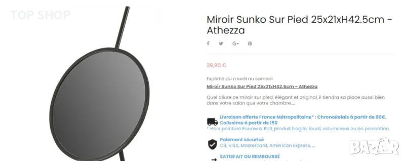 Sunko Огледало на стойка 25x21xH42.5cm - Athezza
