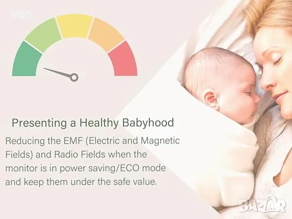 Мониторът ще ви покаже температурата и влажността на помещението, така че лесно да изградите комфортна стая за вашето бебе.