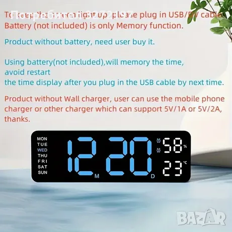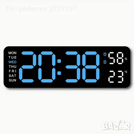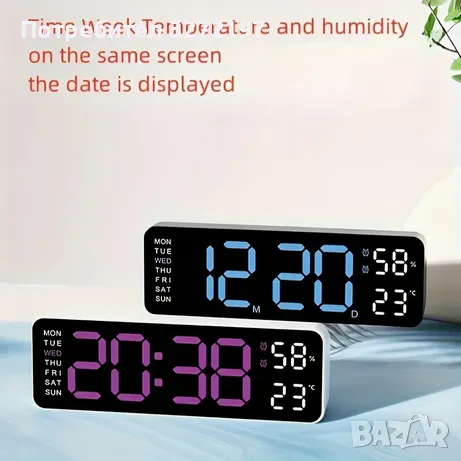 RIDAHOME Голям екран,цифров настолен/стенен часовник,гласов контрол