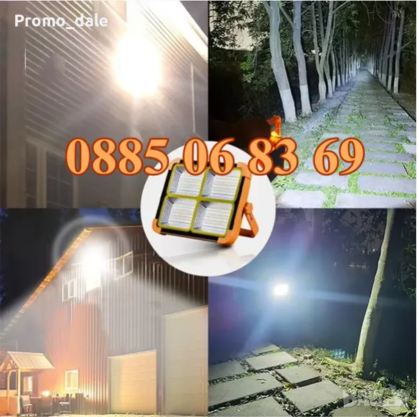 Соларна къмпинг лампа 100W, соларен прожектор с 4 режима на работа 175х155 мм