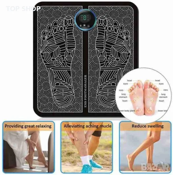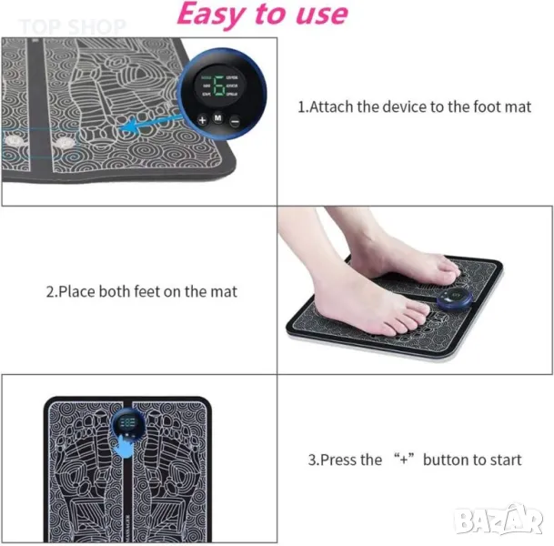 ?【EMS Масажор за крака】Мека и удобна подложка за крака, лека, сгъваема, лесна за носене навсякъде, може да се подсушава с мокра кърпа след употреба. Използвайте EMS технологията за масаж на краката, глезените, ахилесовото сухожилие и мускулите на прасеца, за да насърчите кръвообращението и да отпуснете краката. ?(ЗАБЕЛЕЖКА: да не се използва, ако имате пейсмейкър или високо кръвно налягане; Моля, свалете чорапите си преди употреба и поставете двата си крака върху подложката.)