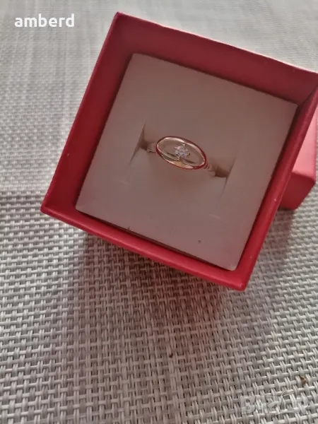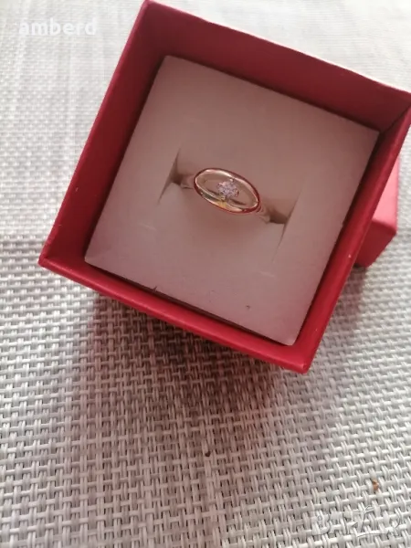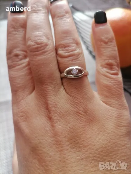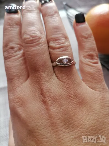Елегантен пръстен, изработен от сребро проба 925 и 1 бял цирконий. Вътрешен диаметър 17.5мм.