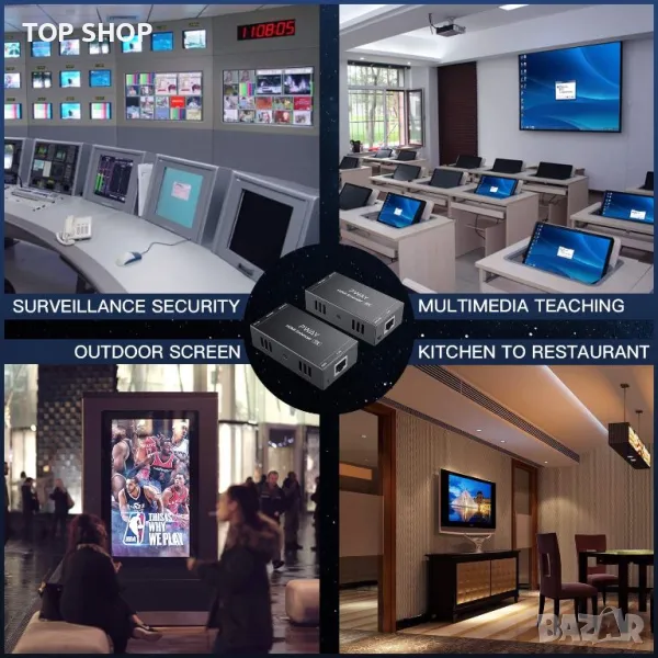 Разширете своите HDMI аудио и видео сигнали. Имайте предвид, че различните типове Ethernet кабели имат затихване на сигнала, препоръчваме Cat5e/6/7 в рамките на 500 фута и Cat5 в рамките на 400 фута