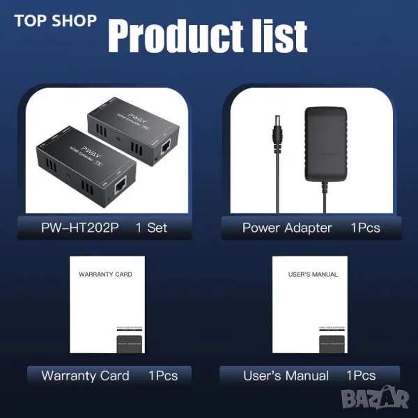 PW-HT202P(POC) HDMI Extender 165ft/50m Lossless Transmission Over Single Cat5e/6 Full HD 1080P Support 3D EDID One Power Supply (UTP+Transmitter and Receiver)