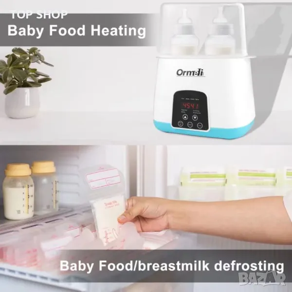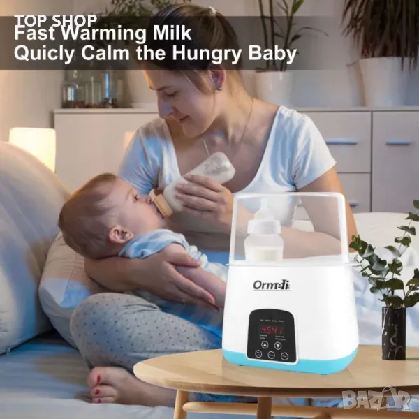 Бързо затопляне и затопляне на храната: Нагревателят за шишета Ormeli може да затопли адаптираното мляко за 3-8 минути, без да губи хранителни вещества и да предотврати плача на бебето, което също може да размрази кърмата/затопли бебешката храна, 24-часовата изолация позволява на майката да приготвя адаптирано мляко по всяко време, лесно за хранене на бебето.