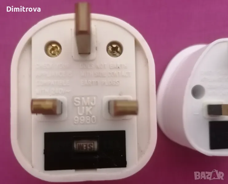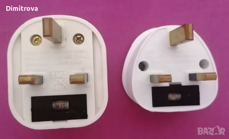 2р. много малко използвани адаптери за щепсел от Европа към Англия, EU-UK, с предпазител.
