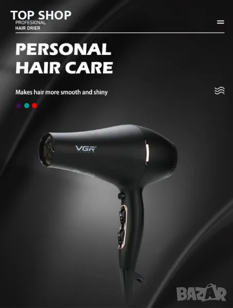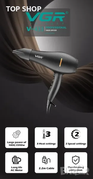 VGR V-433 Професионална салонна серия Сешоар 1800-2200 W AC мотор 3 настройки на топлината (Горещо/Х