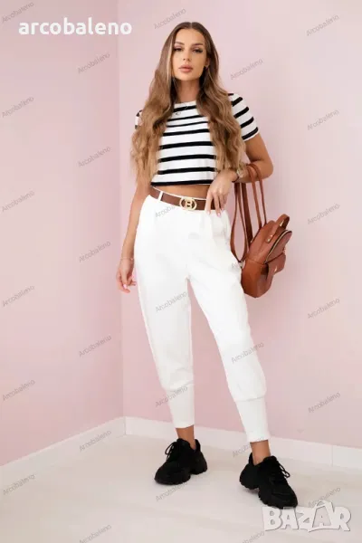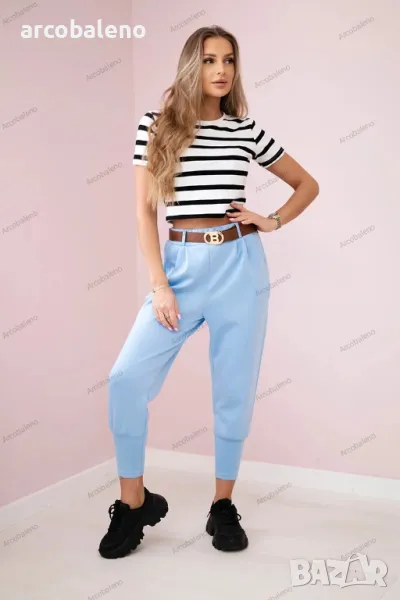 Стилен колан – идеално допълва панталоните, подчертавайки класическия им характер. Раираната катарама може да се различава от тази на снимката.