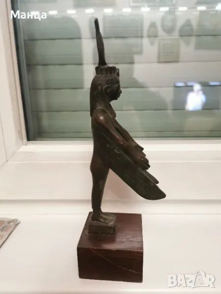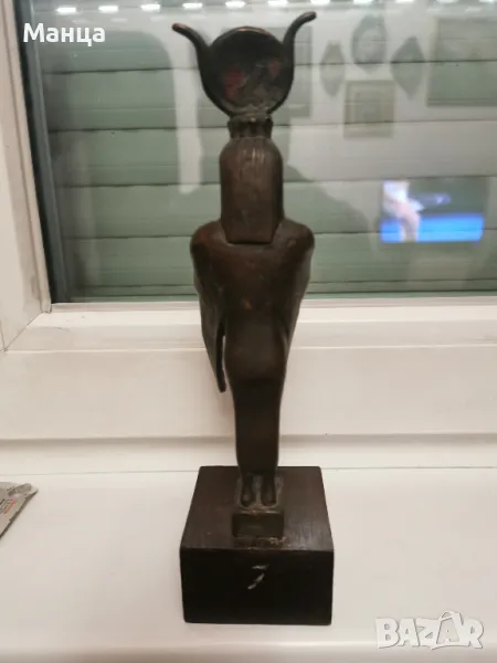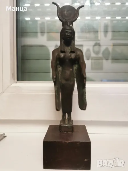 мъжа, дори и след смъртта му. Възкресявала мъртвите. Изида е сестра и жена на бог Озирис, и майка на Хор. Височина 20 см. с пиадестала 25см. Цената е крайна.