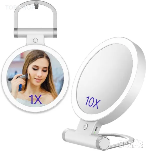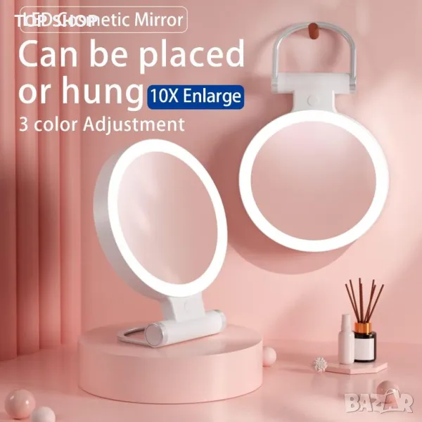Огледало за грим, Осветено огледало за грим с 10X/1X увеличение, Димируемо осветление с докосване, закачане