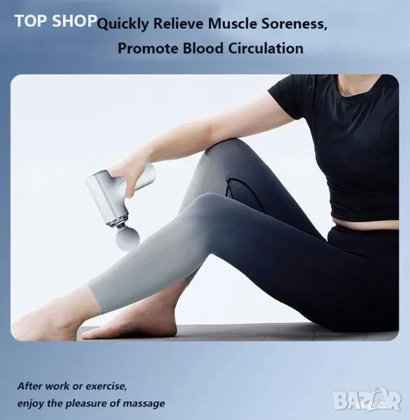 Опаковка: цветна кутия, USB кабел за зареждане, 4 професионални масажни глави, мини масажен пистолет и ръководство за употреба.