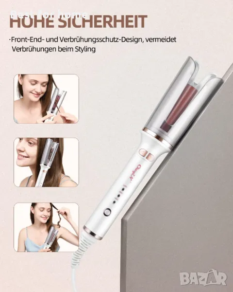 Анти-навиване и защитен дизайн: нашата маша за плажни вълни има 2 м дълъг захранващ кабел, който може да се върти на 360°, който може да се върти свободно без възли и навиване и не прекъсва течението в средата. Машата има и топлоизолиращ дизайн, за да предпази лицето и ръцете ви от изгаряния.