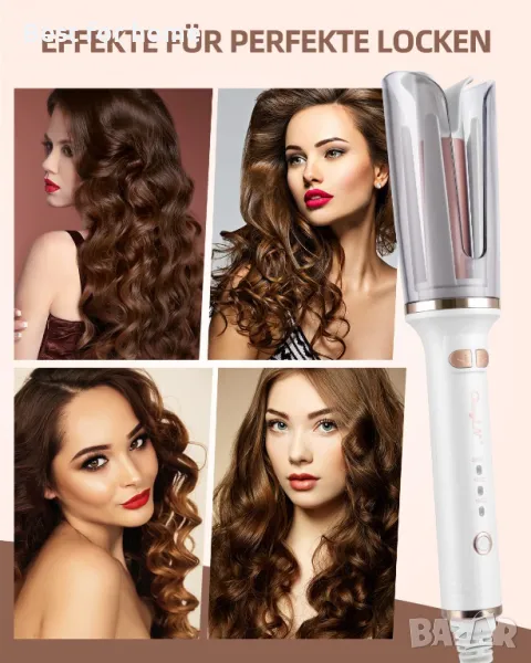Автоматична маша за коса с големи къдрици с 3 температури, автоматична въртяща се маша, изработена от керамика, преносима маша за оформяне на коса, бяла