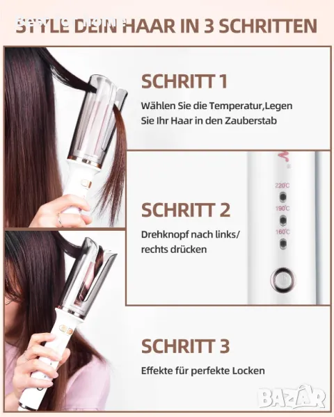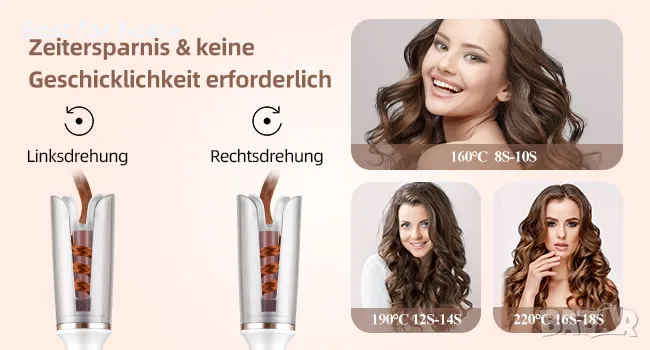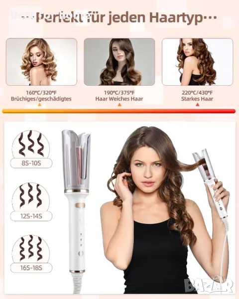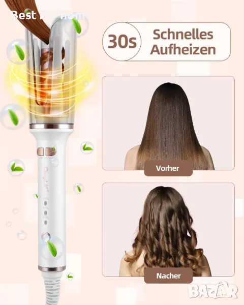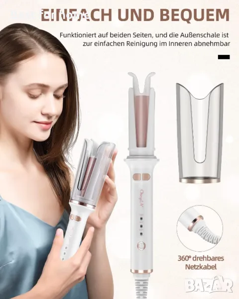 Двупосочно въртене за свободно оформяне: Нашата автоматична маша за коса, която загрява косата напълно и равномерно, за да постигне по-дълготрайно оформяне на къдриците, е оборудвана с двупосочни бутони. Машата може да се върти както по посока на часовниковата стрелка, така и обратно на часовниковата стрелка, за да отговори на различните ви нужди за оформяне на косата и да направи къдриците по-жизнени. Това е перфектният инструмент за къдрене за всички типове и стилове коса