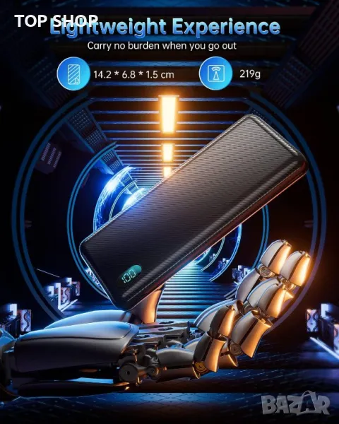 Power Bank, 10000 mAh Power Bank, малък, но здрав, ултра тънък с LED дисплей, външна батерия за моби