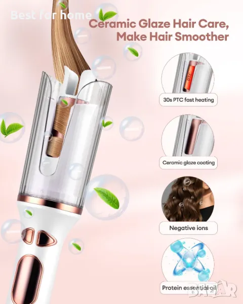 【Намаляване на увреждането и накъдрянето на косата】 25-милиметровата автоматична пръчка за къдрене на коса с керамично покритие, наситено с есенция на отрицателни йони, намалява триенето и накъдрянето, което може също така ефективно да предотврати увреждането на косата от автоматичната маша при бързо нагряване.