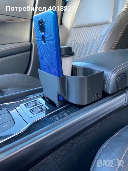 холдъра става само за коли с електрическа ръчна спирачка.Лесно се подпъхва в щоричката пред подлакъника.Подходящ за всички видове кенчета и чашки за кафе.Пред холдъра има джобче за телефон.цена 35лева.0895513446