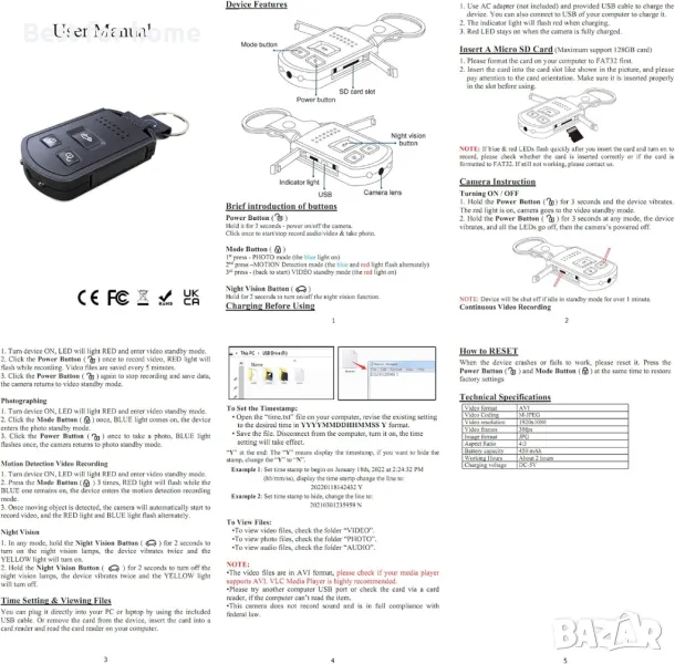 [Охранителна камера]: Тази камера има много полезни функции. Като постигане на видео, снимки, откриване на движение и други функции. Тази камера за сигурност изглежда като ключ за кола, но всъщност има