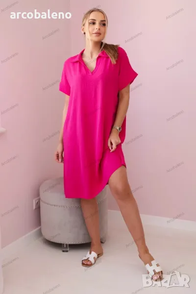 Дамска рокля с V-образно деколте и яка, 3цвята