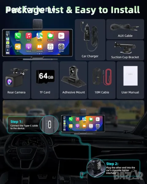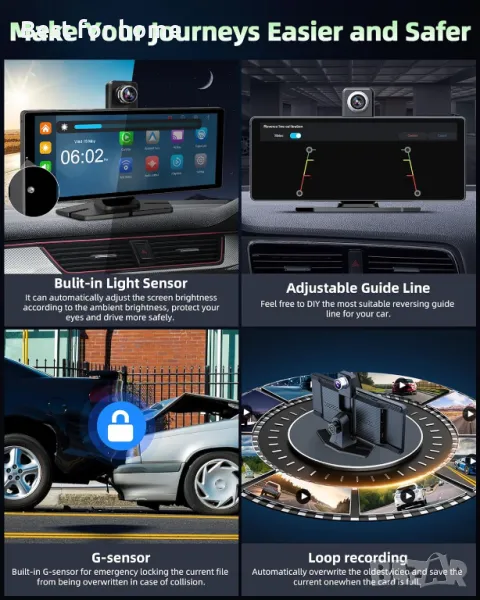 Мултимедия- дисплей 10,3 инча Carplay Android Auto Display с 4K Dashcam
