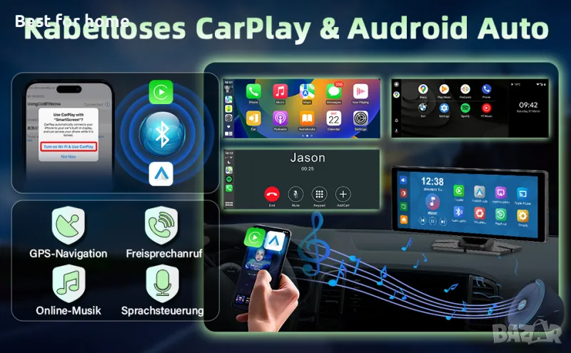 Безжичен CarPlay и Android Car