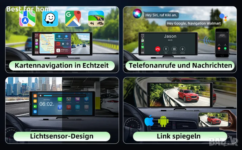 Осигурява интелигентна автомобилна навигационна система в реално време чрез свързване към автомобилния дисплей Carplay Android, няма нужда да актуализирате картите често или да плащате допълнително. Вградена микрофонна функция за по-плавни телефонни разговори, слушане на музика и дори изпращане на гласови команди за достъп до