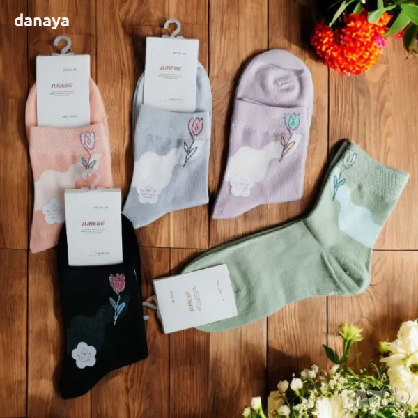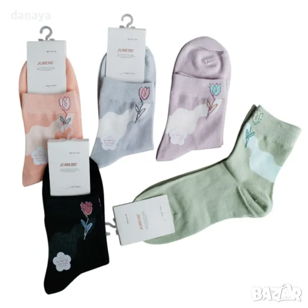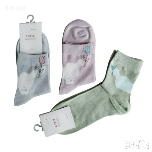 Подарете си комфорт и стил с тези изискани дамски чорапи, 36-41 номер. Изработени от 100% висококачествен памук, те осигуряват мекота, дишаемост и удобство през целия ден. Декорацията “Лале” придава елегантен и свеж акцент, който ще допълни всяка визия.