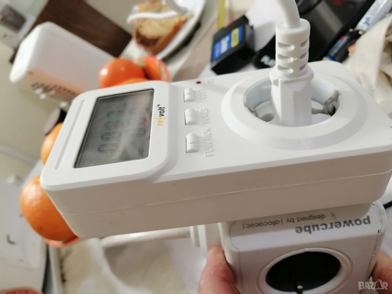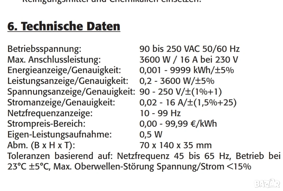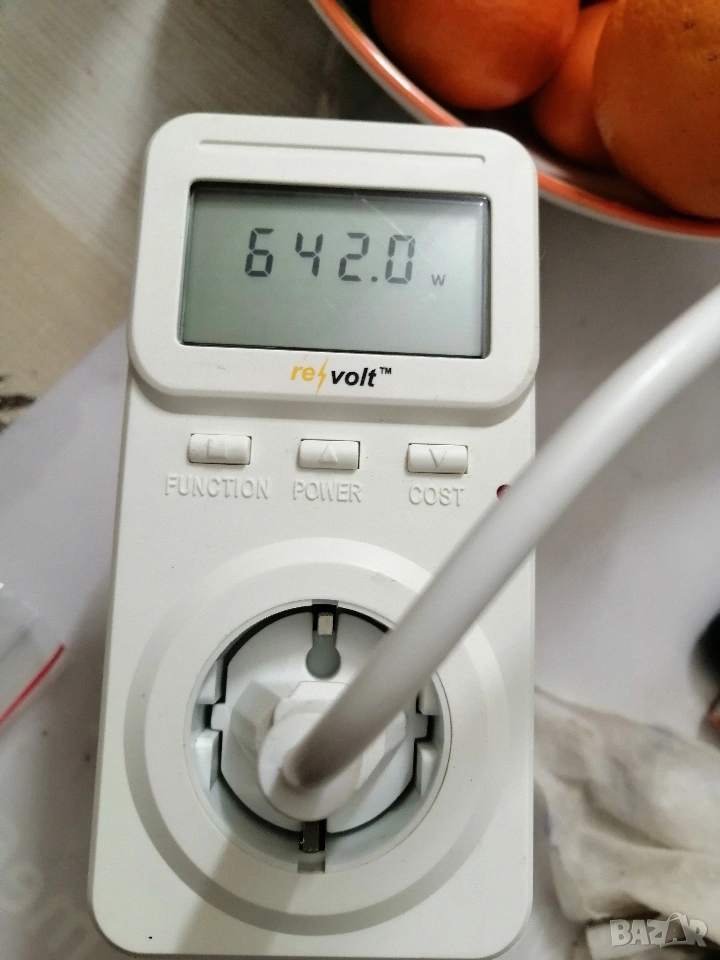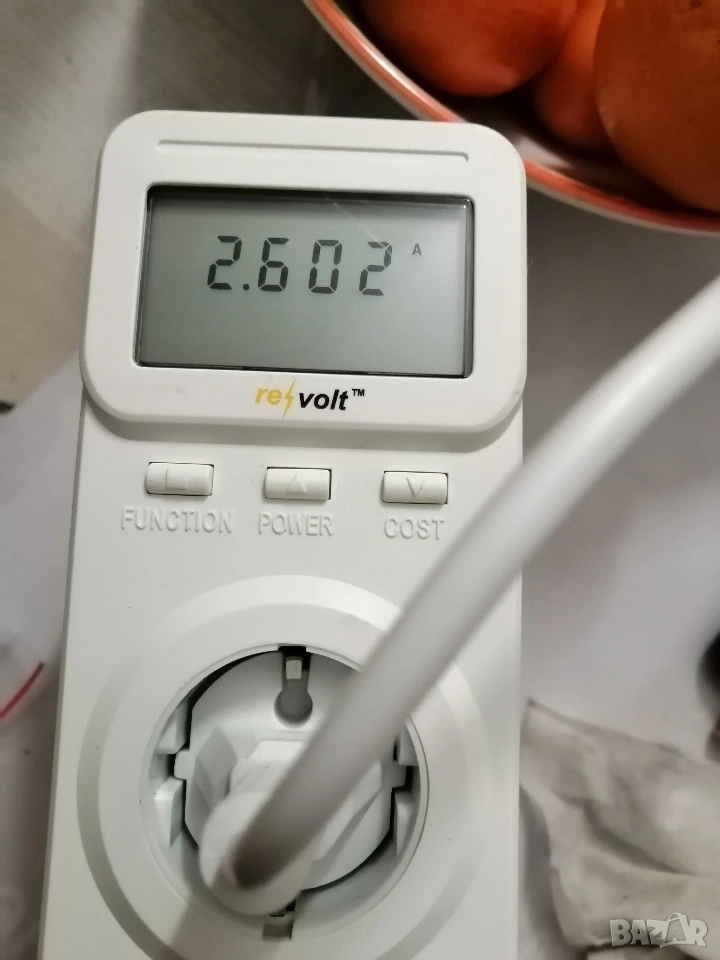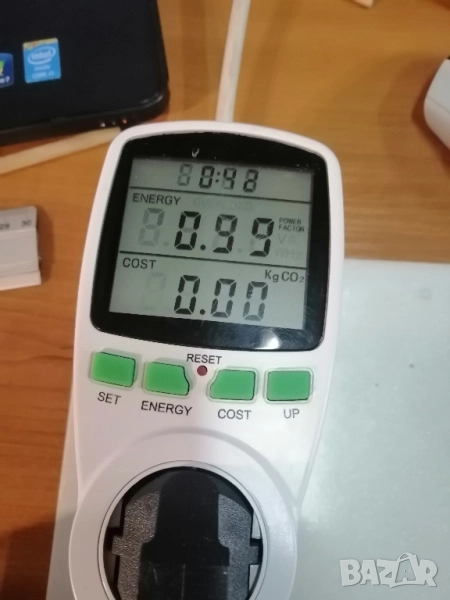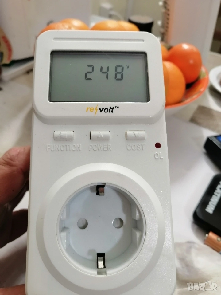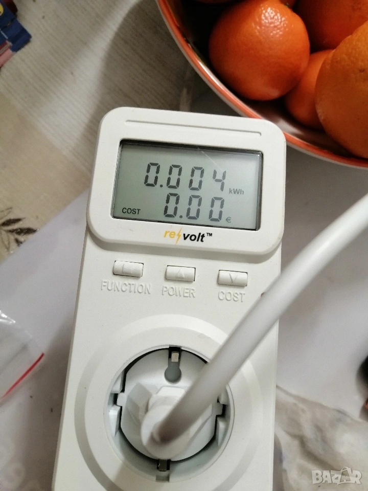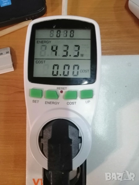 Измерва напрежение, ток, мощност, сума, честота, Cos ф и статистика на консумацията с натрупване.. Донесен от Германия и работи без проблеми.