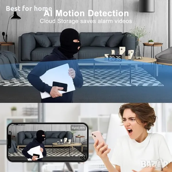 - Тип камера: 4K интелигентна шпионска камера с будилник
