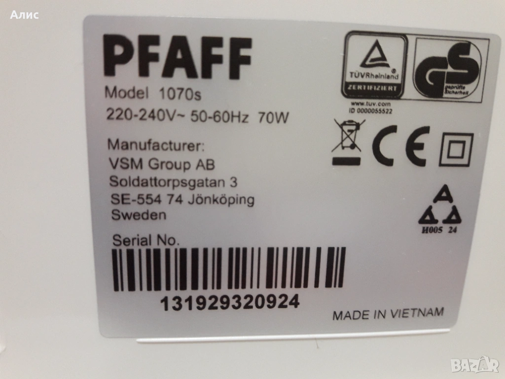 Нова електрическа шевна машина Пфаф 1070 S. Мотор 70 вата. Лед осветление. 30 вида шевове.
