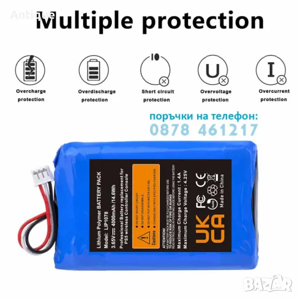 Литиевойонна батерия за PlayStation 5 контролери с мощност 4000mAh, което ще гарантира дълга активност на игра, без нуждата от презареждане. Ако старата батерия е повредена и не държи заряд, може лесно да я замените с тази. Подходяща е за Sony Playstation 5 Dualsense Controller, модели CFI-ZCT1/W/B/U