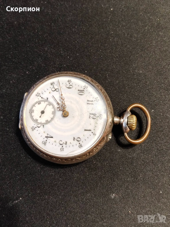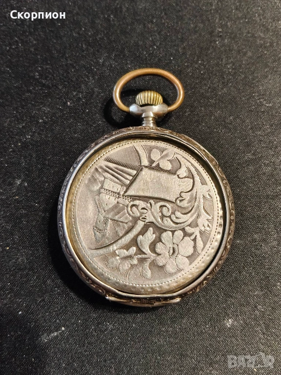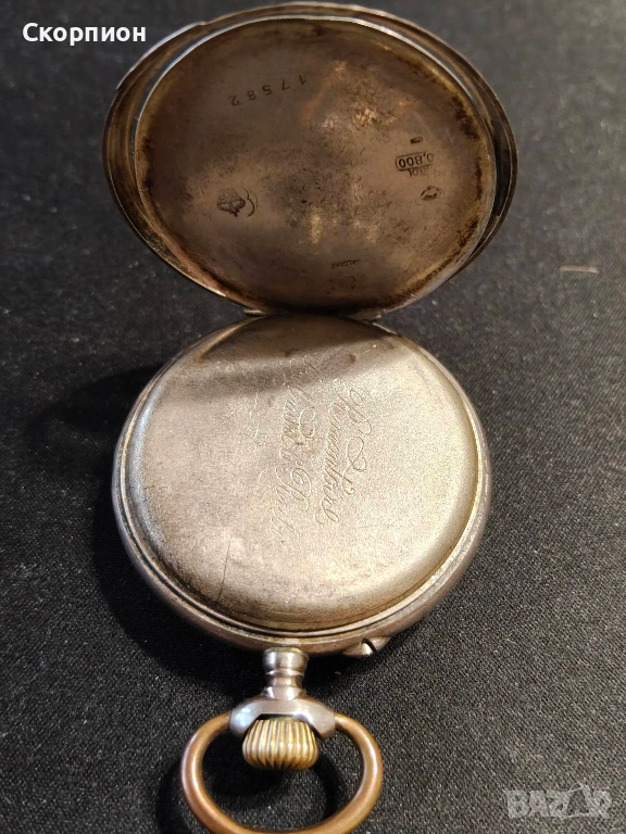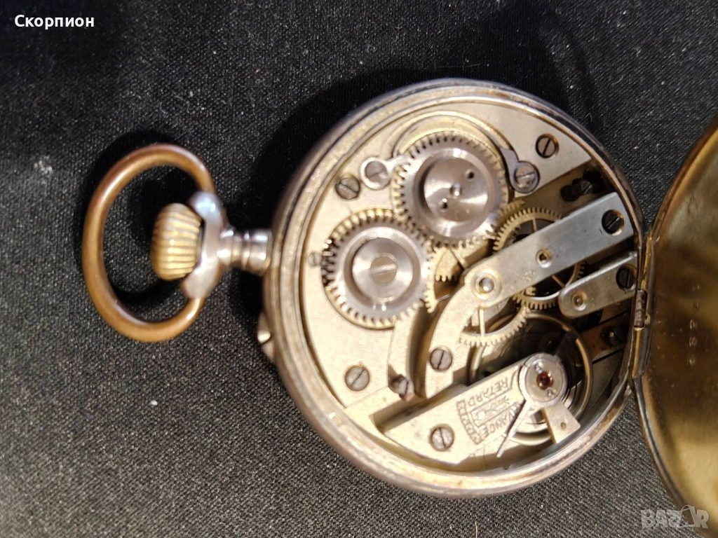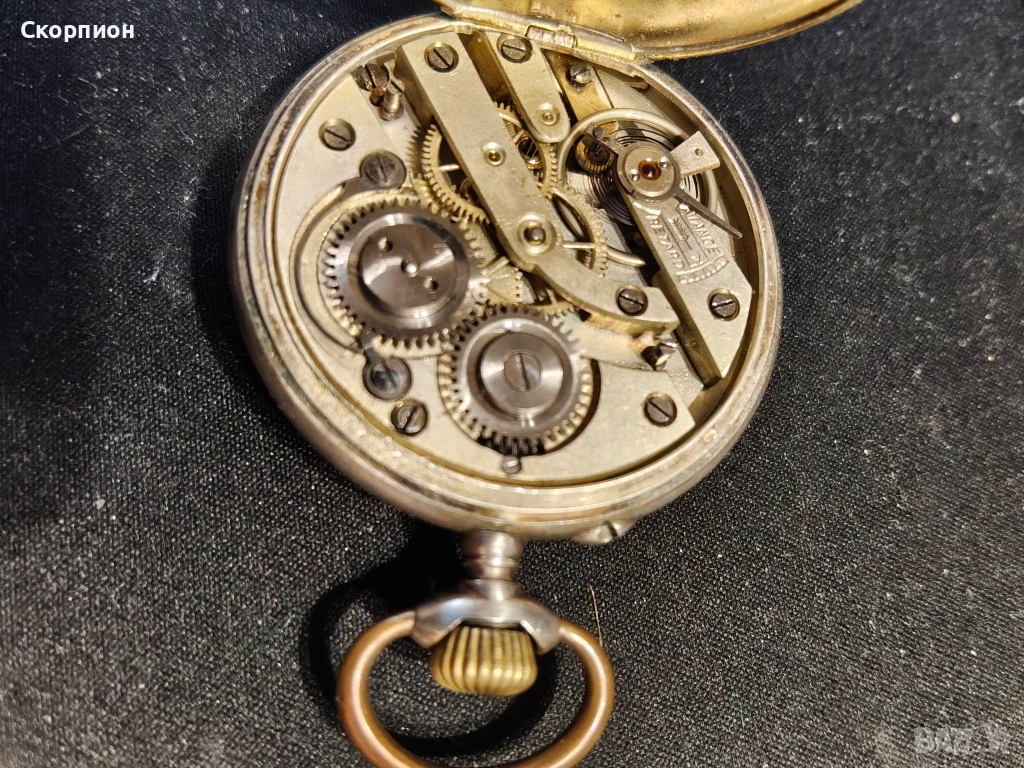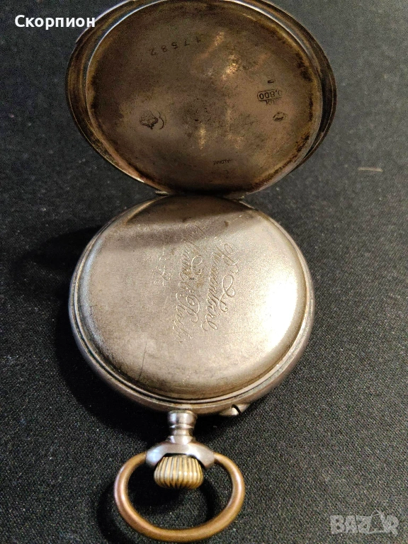 Швейцарски СРЕБЪРЕН джобен часовник с позлата - Проба 0.800. Часовникът е почистен, смазан и сервизан и профилактиран от часовникар. Отличен външен вид - от колекция, работещ и поддържащ точно време, в перфектно състояние, единствената забележка е че не се затваря плътно задния капак. Налични са всички маркировки на часовника, което е видно от снимките. Закупен е лично от мене от антикварен магазин в Западен Берлин, Германия за скромната сума от 55 евро.