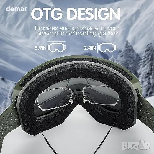 NewBEP очила за ски сноуборд - UV защита, против замъгляване, OTG очила за ски сняг за мъже жени
