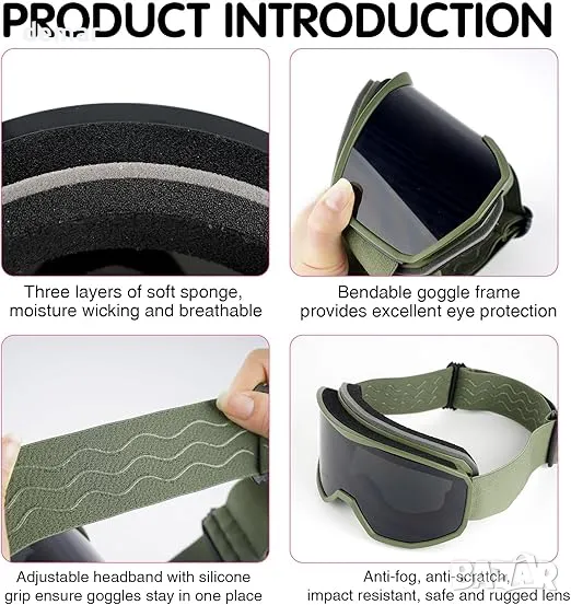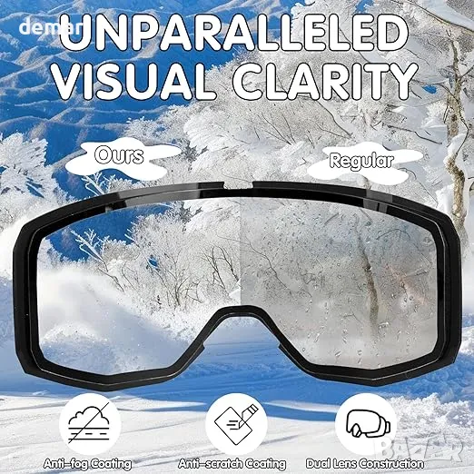 Тези очила за ски разполагат с внесени от Италия PC лещи с двуслойно покритие против мъгла за превъзходна устойчивост на мъгла и UV защита, осигуряващи ясна видимост по склоновете. Издръжливата TPU рамка предлага висока устойчивост на удар и удобно прилягане с мека подплата от пяна за защита на лицето. Проектирани с OTG функционалност, те побират диоптрични очила, докато регулируемата, еластична лента за глава осигурява сигурно прилягане по време на дейности. Дишащата система предотвратява запотяването и поддържа въздушния поток, повишавайки комфорта при студени условия. Идеални за различни спортове на открито като каране на ски, сноуборд, колоездене и други, тези очила предлагат надеждна защита на очите и гъвкавост.