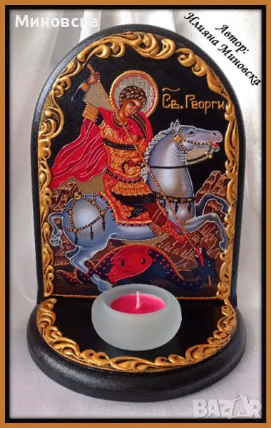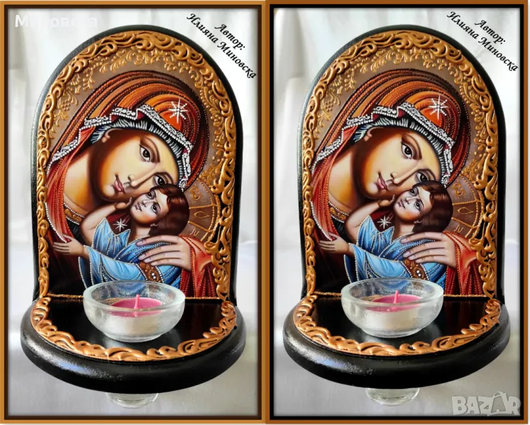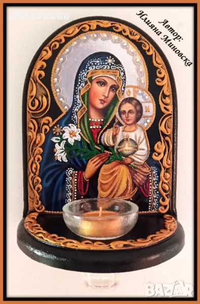 Иконостасът се предлага със стъкленица за елей и 1бр. свещ.