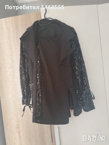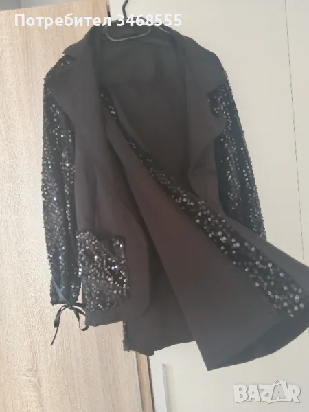 Чисто нов дамски черен костюм М размер с пайети на панталона и сакото.