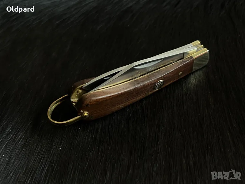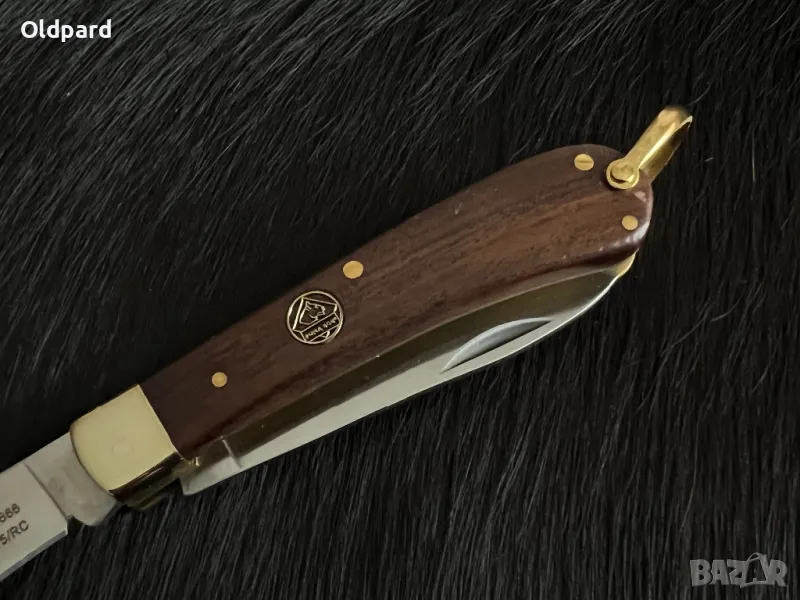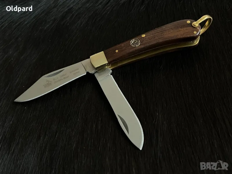 Ловен джобен нож. PUMA SGB Jacaranda. Две остриета с дължина 7,0 см ви позволява да извършвате всякаква работа: от лов до къмпинг. Дебелина на острието 2,5 мм. Дължината на ножа в сгънато състояние е 9,2 см. Острие от стомана 1.4116. Дръжка от дърво. Това е удобен сгъваем нож за пътуване до гората или за колекция.