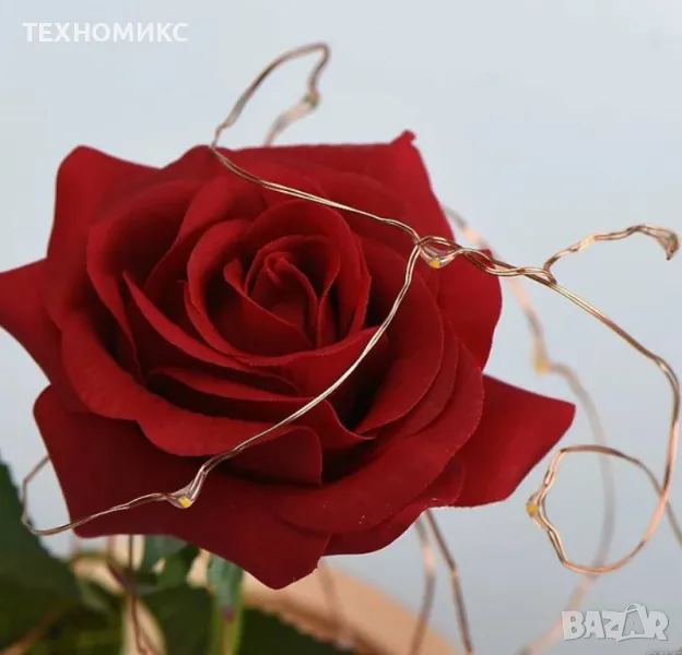 Тази красива роза ще бъде един романтичен и оригинален подарък. Ръчно изработена цъфтяща роза, увита в лампички, благодарение на които красотата й ще ви радва както през деня, така и през нощта. Външният й вид дава усещане за елегантност и изящество, което ще остане вечно.