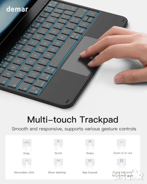 Проектирана за съвместимост с iPad Air (11-инчов M2, 4-то/5-то поколение 10,9-инча) и iPad Pro (11-инчов 1-во-4-то поколение), тази тънка, магнитна плаваща клавиатура превръща вашия iPad в лаптоп със 130-градусов регулируема алуминиева панта. Той разполага с прецизен мултитъч тракпад с технология против грешка при докосване за безпроблемно управление и поддържа iPadOS преки пътища за ефективна многозадачност. С интелигентна функция за събуждане/сън, той предлага до един месец употреба без подсветка след пълно 3-часово зареждане, осигурявайки безпроблемно пътуване или работа.