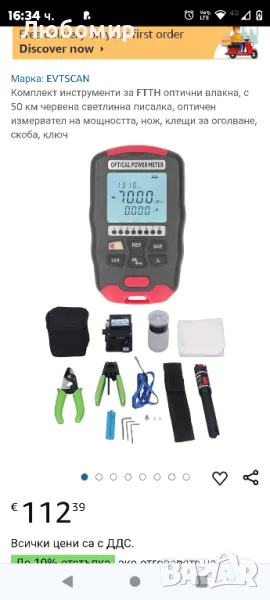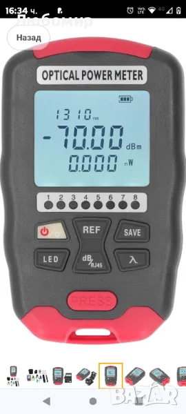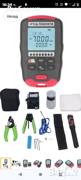 Комплект инструменти за FTTH оптични влакна, с 50 км червена светлинна писалка, оптичен измервател на мощността, нож, клещи за оголване, скоба, ключ.МНОГО ФУНКЦИИ: Измервателят на оптична мощност има десет тестови дължини на вълната, автоматично затваря след десет минути в състояние на готовност, може да се използва за мрежово тестване, LED светлина, памет за дължина на вълната.10 ДЪЛЖИНИ НА ВЪЛНАТА: FTTH инструментариумът може да измерва 10 стандартни дължини на вълната от 850, 980, 1270, 1300, 1370, 1490, 1550, 1577, 1625, 1650nm.ПРЕЦИЗНО ОТКРИВАНЕ: Инструментът за фибростъкло може лесно и точно да открие и локализира счупване на влакно, лоша връзка, огъване или разкъсване.ГЪВКАВО РЯЗАНЕ: Идеален за заваряване или други прецизни приложения, ножът поставя нов стандарт за гъвкавост и производителност.С АКСЕСОАРИ: Инструментите от фибростъкло са пълни с голям капацитет, имат мощен източник на светлина и пълни аксесоари.