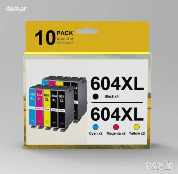 Съвместими с принтери Epson Expression Home и Workforce, тези 604XL касети с мастило включват 4 черни, 2 циан, 2 магента и 2 жълти касети, като предлагат общо 10 касети в опаковка. Всяка черна касета осигурява до 550 страници, докато цветните касети осигуряват до 350 страници. Проектирани за лесна инсталация, те осигуряват резки, живи цветни модели и ясен текст за висококачествен печат.