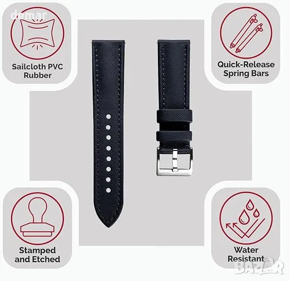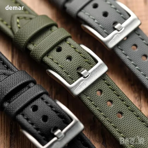 Тази британска проектирана каишка за часовник от платно предлага луксозна, издръжлива и удобна опция за ширина на 22 mm, съвместима с популярни часовници за гмуркане като Rolex, Seiko и Omega. Изработена от гъвкава гума с лека подплата, тя осигурява комфорт през целия ден и сигурно прилягане с регулируеми предпазители. Пружинните ленти за бързо освобождаване на каишката позволяват лесна промяна на стила без инструменти, съчетавайки елегантност и практичност.