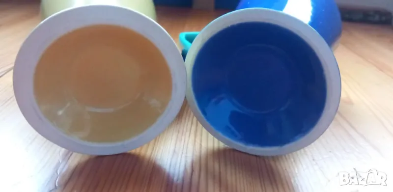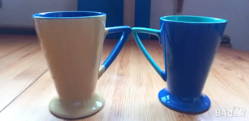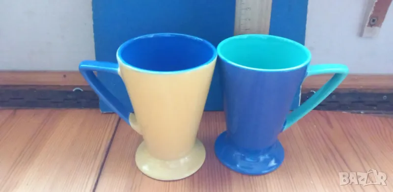Многоцветни чаши за кафе, чай, мляко, капучино. Поставям състояние използвано, защото са купувани преди около 15 години. Не са ползвани, отлично състояние. Височината им е около 10 см, вместимост 180 мл до ръба. Цената за една чаша е 5 евро. Двете заедно са с цена 8 евро. Налични са две чаши.
