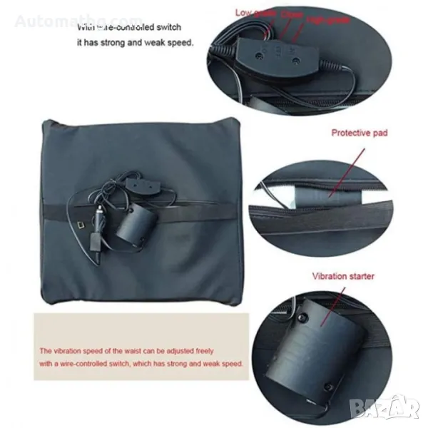 Масажираща възглавница за кръста, подходяща за автомобили и други МПС-та на 12V.