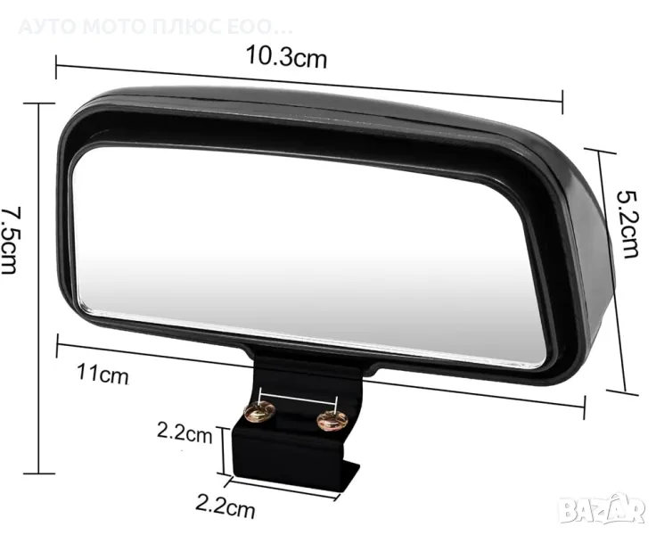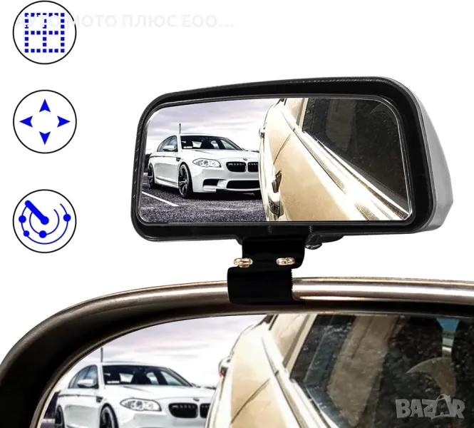 Допълнителното външно огледало за обратно виждане се захваща на страничното огледало и дава допълнителна видимост, като покрива всички точки, които липсват в стандартното огледало и улеснява паркирането и престрояването.