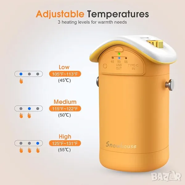 Безопасен електрически нагревател за ръце: безопасността е наш основен приоритет. Ние използваме първокласни чипсети за контрол на нивата на топлина, несъдържащи течности и забавящи горенето материали, за да гарантираме безопасността на продуктите. Препоръчва се за тези, които все още издържат на студа на открито.