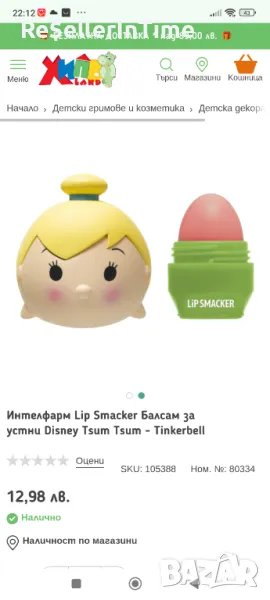 Разпродажба!Lip Smacker Балсам за устни Disney Tsum Tsum - Tinkerbell, снимка 1 - Други - 48840854 Разпродажба!Lip Smacker Балсам за устни Disney Tsum Tsum - Tinkerbell, снимка 2 - Други - 48840854 Разпродажба!Lip Smacker Балсам за устни Disney Tsum Tsum - Tinkerbell, снимка 3 - Други - 48840854 1/3