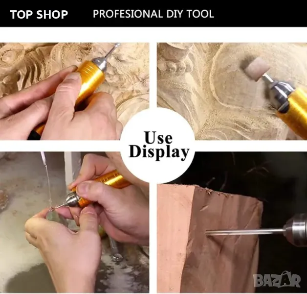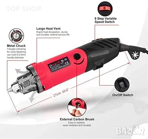 Многофункционален ротационен инструмент, идеален за голямо разнообразие от приложения. Можете да режете, шлайфате, полирате, оформяте, пробивате, премахвате грани, почиствате, гравирате и т.н. Позволява ви да извършвате различни занаяти.