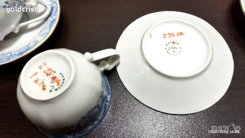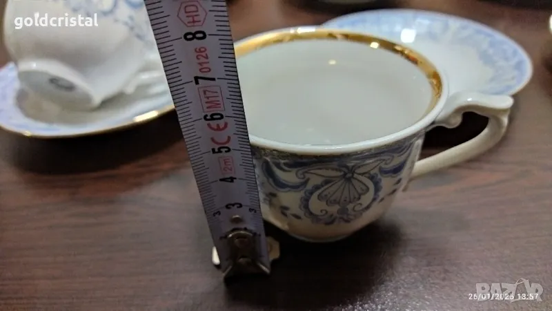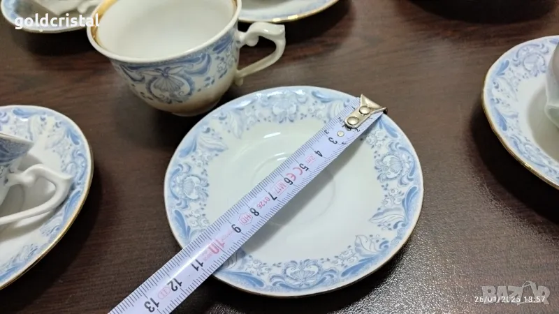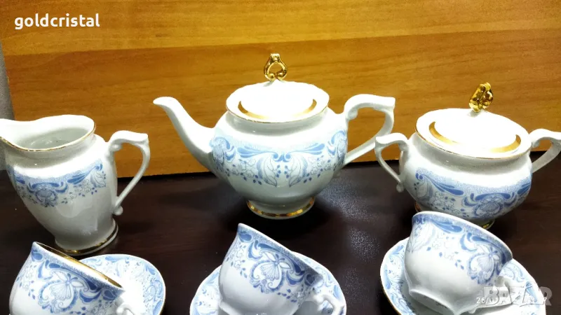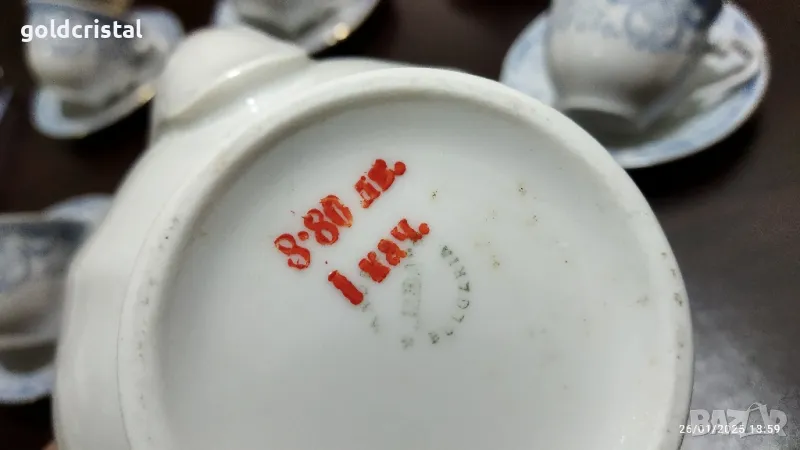 Стар български порцелан Изида барок златен кант чашки за кафе чайник заханица латиера без забележки сервиз комплект сет лот ретро арт декор винтидж колекция стари старинни антикварни предмети обзавеждане за дома и семейството подходящи за подарък за ценители и колекционери
